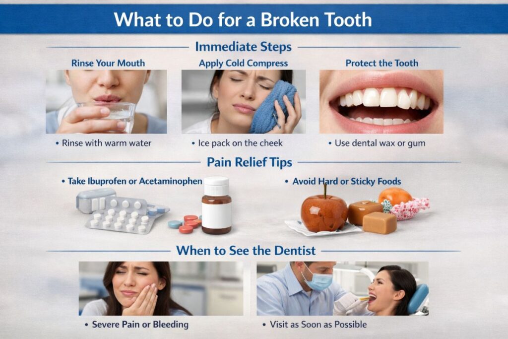 A broken tooth can be painful and unsettling, but staying calm and following the right steps can help minimize further damage and ease discomfort. Here’s what to do: